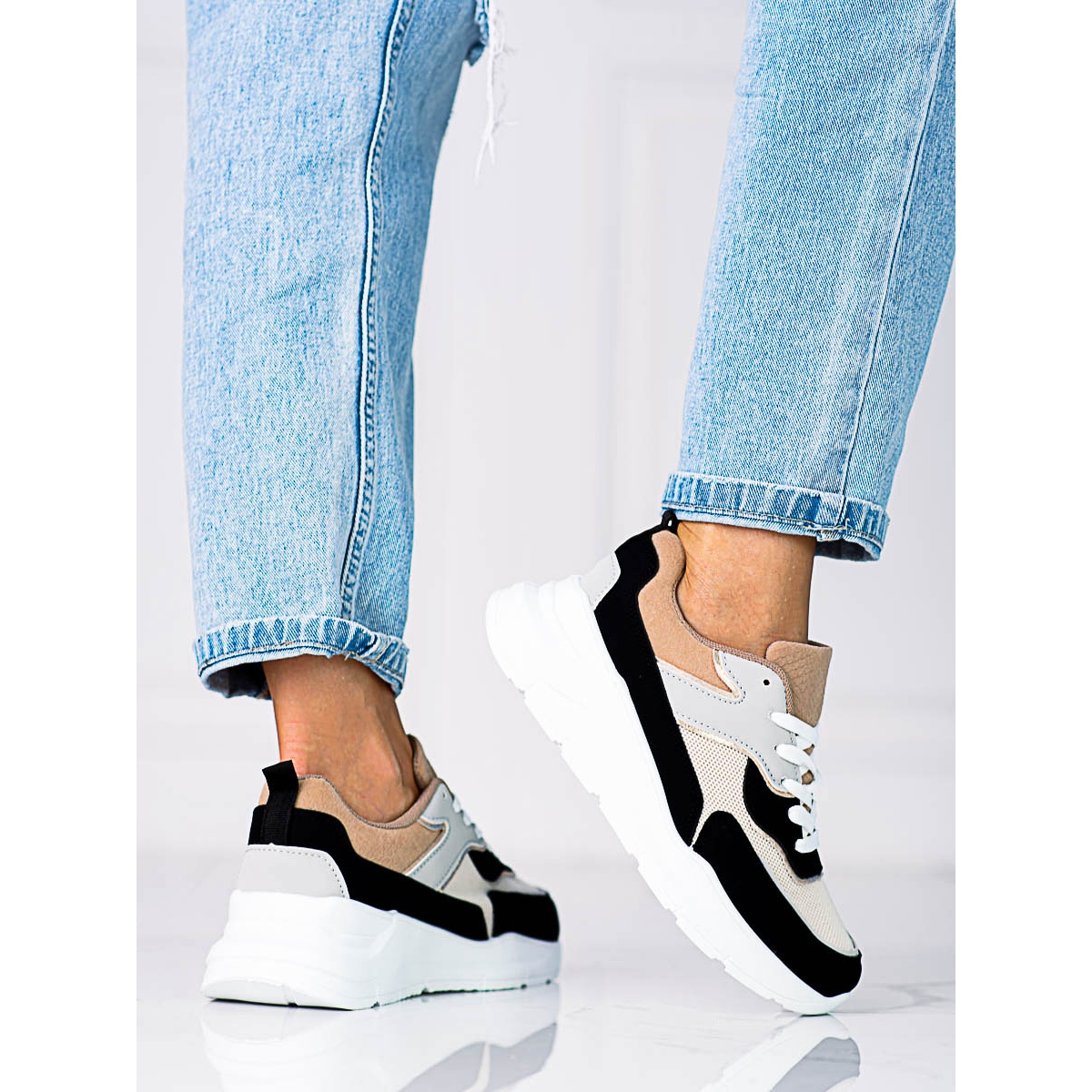 SHELOVET Tenisi comozi de damă Shelovet pe o platformă groasă, neagră și bej negru