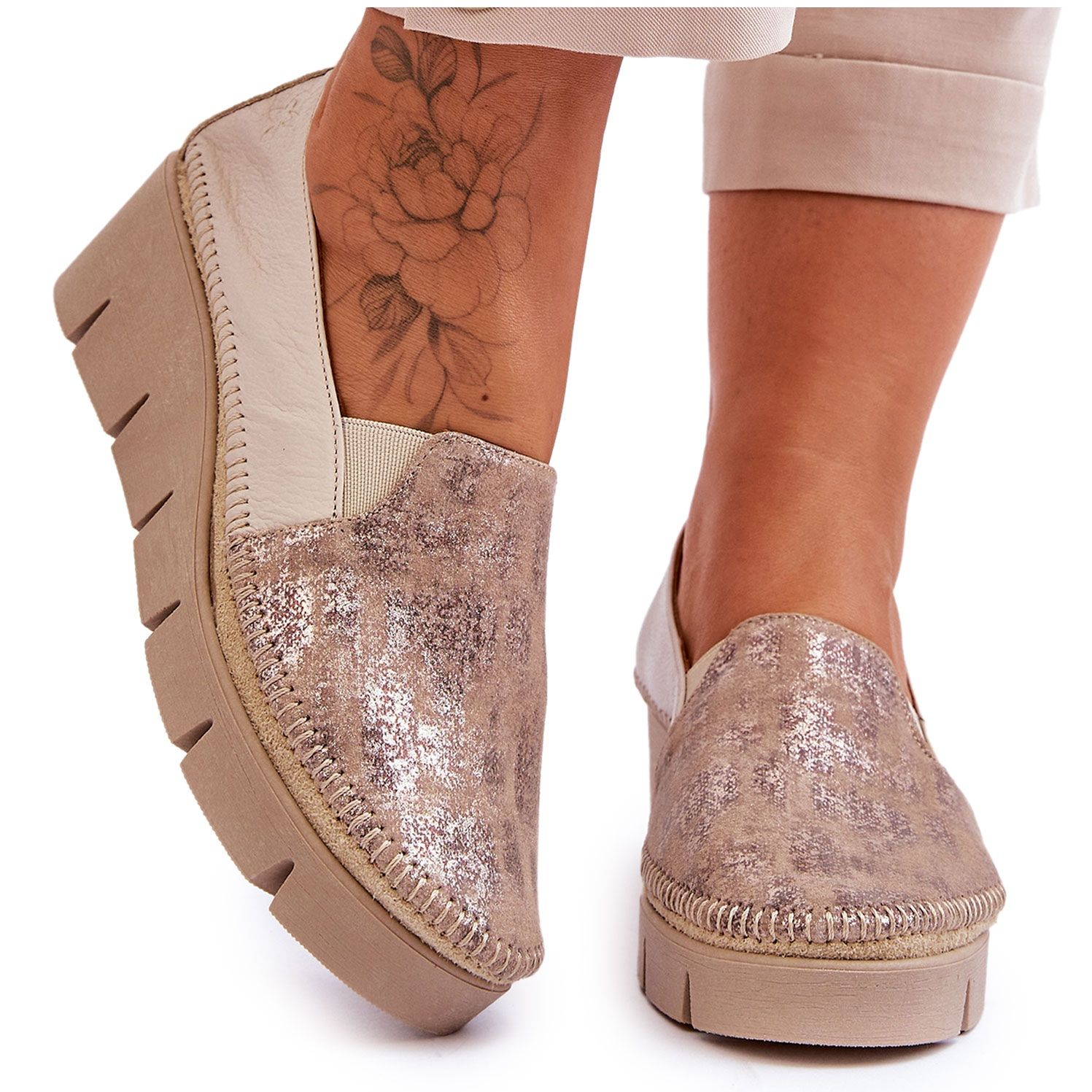 Adidași din piele pe Wedge Maciejka 5814A-10-BEIGE