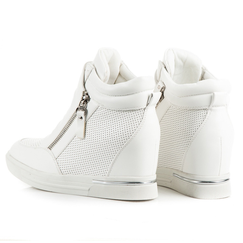 Tenisii albi cu pană de la marca Inna sunt o alegere excelentă pentru femeile care apreciază combinația dintre stil și confort. Acești pantofi sport înalți se remarcă printr-un vârf rotund și o închidere modernă cu fermoar, care nu numai că îi face mai ușor de încărcat, dar le conferă și un caracter unic.