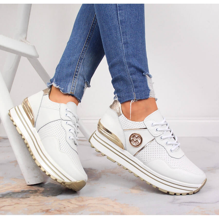Detalii: Tenisi dama din piele pe platforma Filippo alba