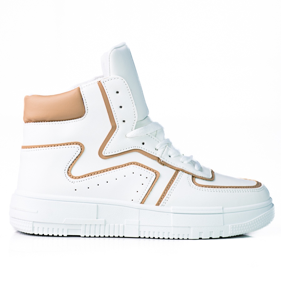 SHELOVET Tenisi dama High Shelovet din piele ecologica alba si bej
