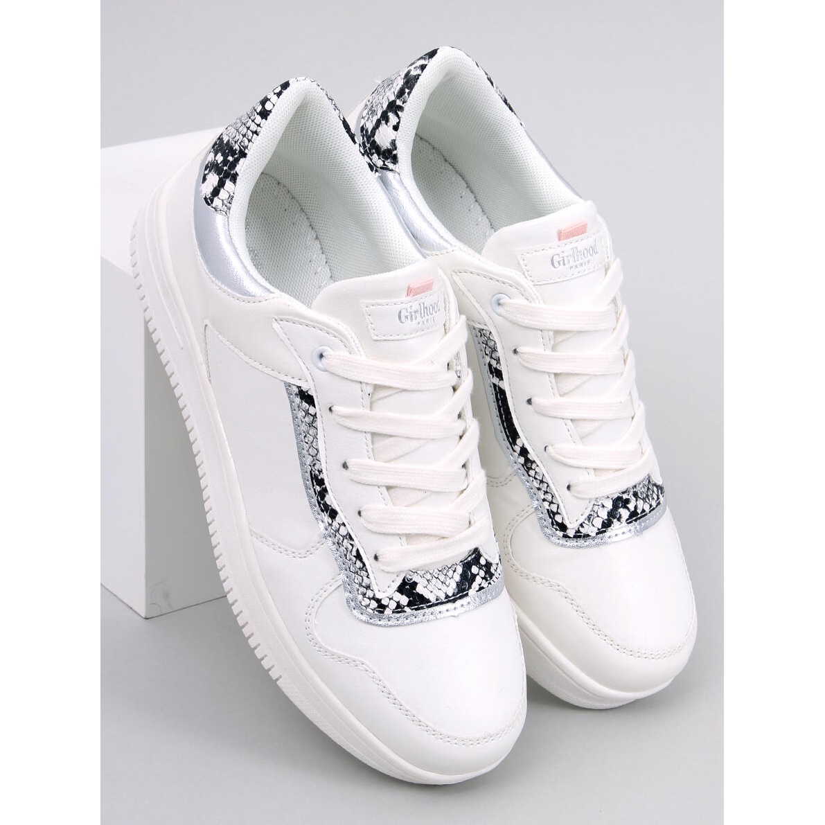 Adidașii pentru femei Lexi White - Clasic cu gheare. Pantofii de sport alb, din dantelă sunt un must-have în fiecare garderobă: universal, confortabil și elegant. Forma minimalistă este ruptă cu inserții subtile despre tema pielii unui șarpe, care adaugă caracter, fără a deranja estetica elegantă și zilnică.