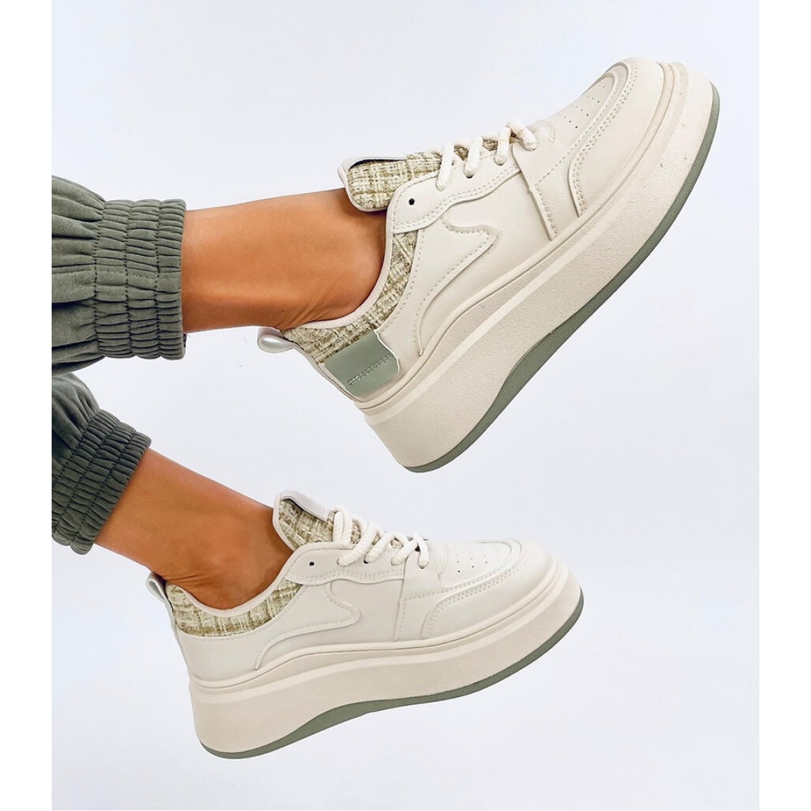 Detalii: Tenisi dama Motimes Beige Verde pastel - Inello