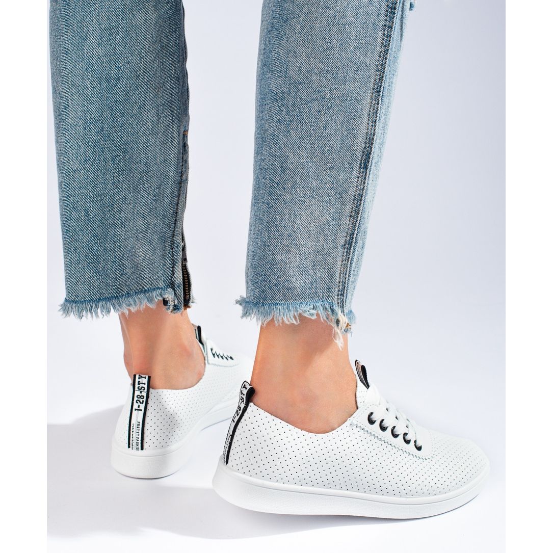 Detalii: Tenisi dama Shelovet albi ajurati negru