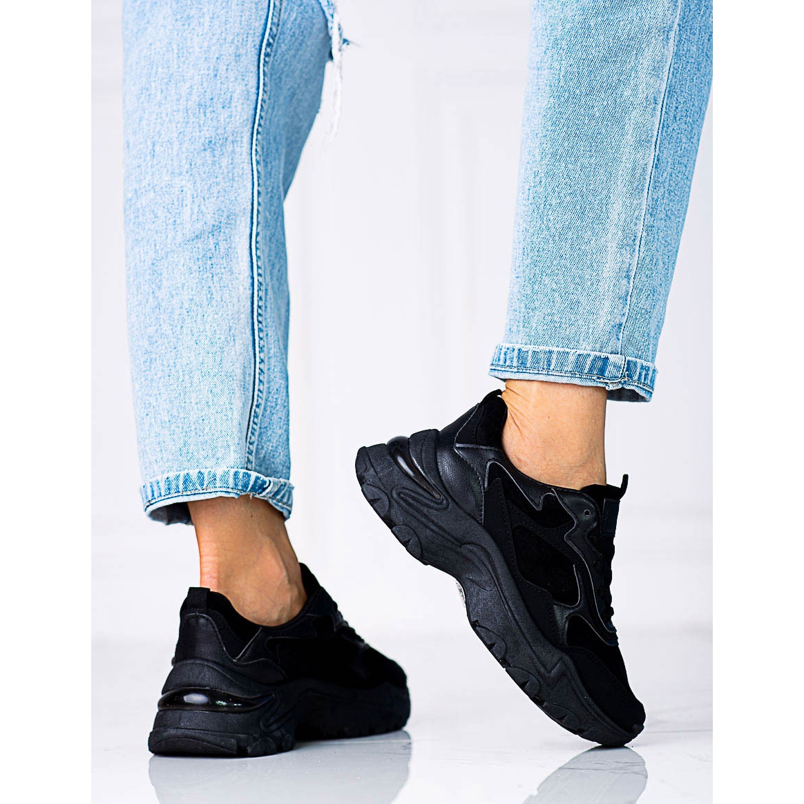SHELOVET Tenisi de dama Black Shelovet cu siret, cu talpa groasa negru