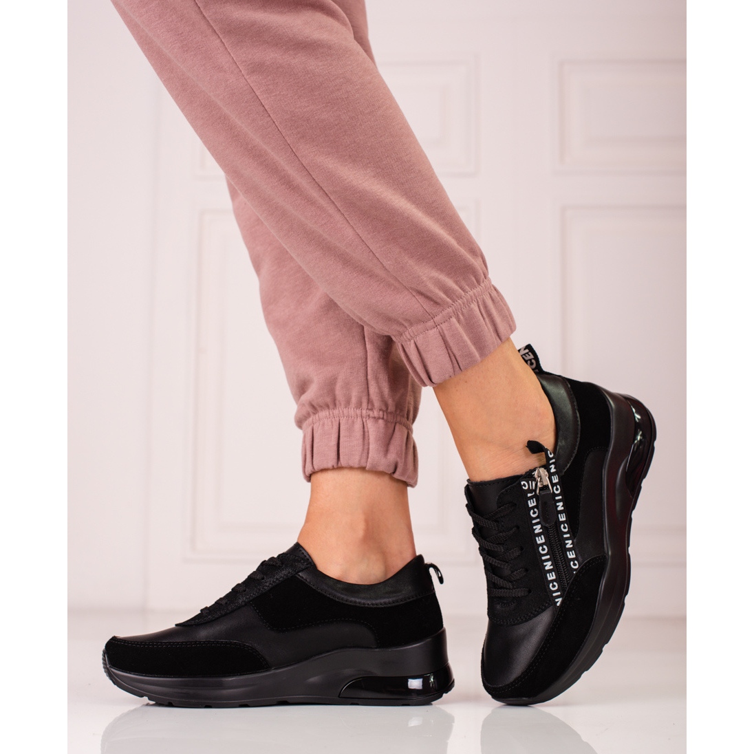 SHELOVET Tenisi de damă din piele cu fermoar Shelovet negru