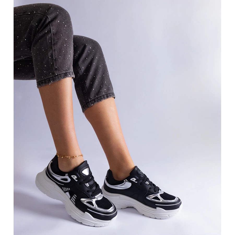 Detalii: Tenisi de dama negri cu insertii argintii negru
