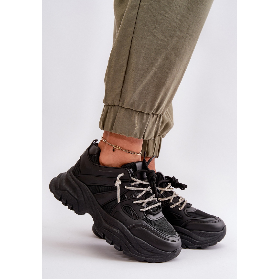 Detalii: Tenisi de damă Relissa negri pe o talpă masivă cu șireturi decorative negru