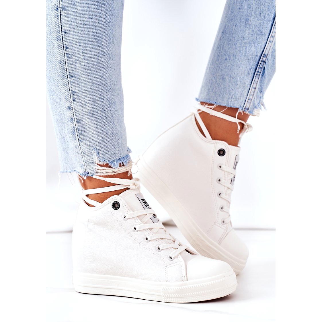 Descoperiți stilul și confortul unic cu adidașii cu pană din piele Big Star EE274128 într-o culoare albă elegantă. Acești pantofi de damă la modă sunt o combinație perfectă de clasic și modern, perfectă atât pentru stilurile de zi cu zi, cât și pentru cele mai elegante.