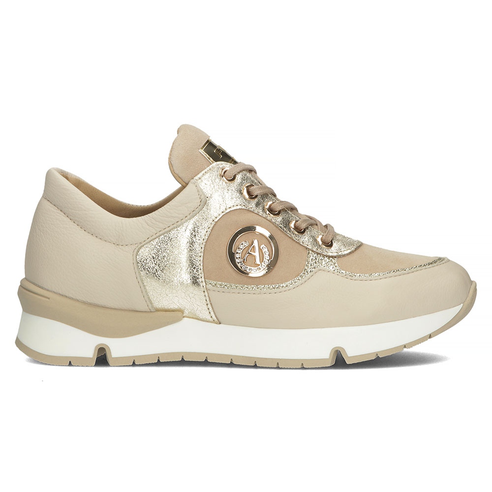 Platforma înaltă de 1 cm oferă o amortizare suplimentară, iar tocul plat face ca acești pantofi să fie perfecti pentru fiecare zi. Partea superioară de 7 cm înălțime evidențiază perfect linia picioarelor, iar culoarea bej face adidașii ușor de asortat la diverse stiluri – atât casual, cât și mai elegante.