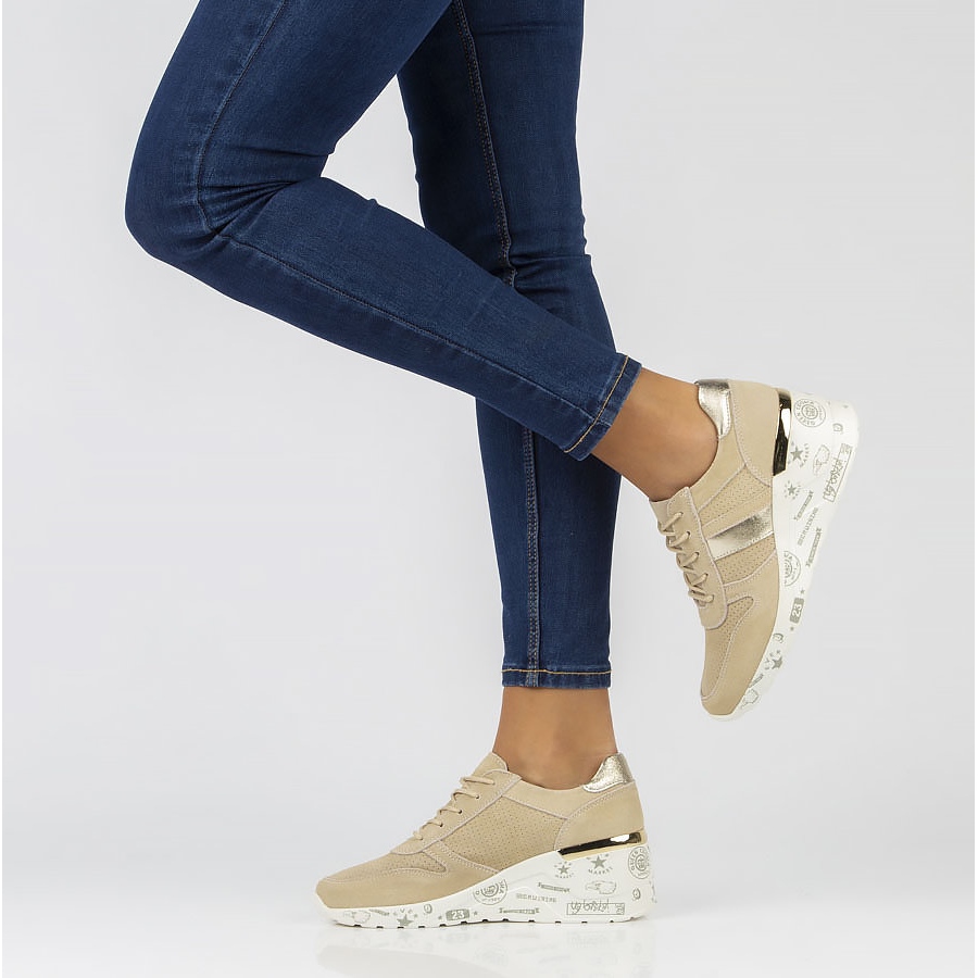 Culoarea lor universală, bej, le face să se potrivească perfect cu diverse stiluri, de la casual la mai elegante. O platformă înaltă de 2 cm și o pană înaltă de 5,5 cm nu numai că alungesc vizual silueta, dar oferă și un confort suplimentar în timpul mersului.