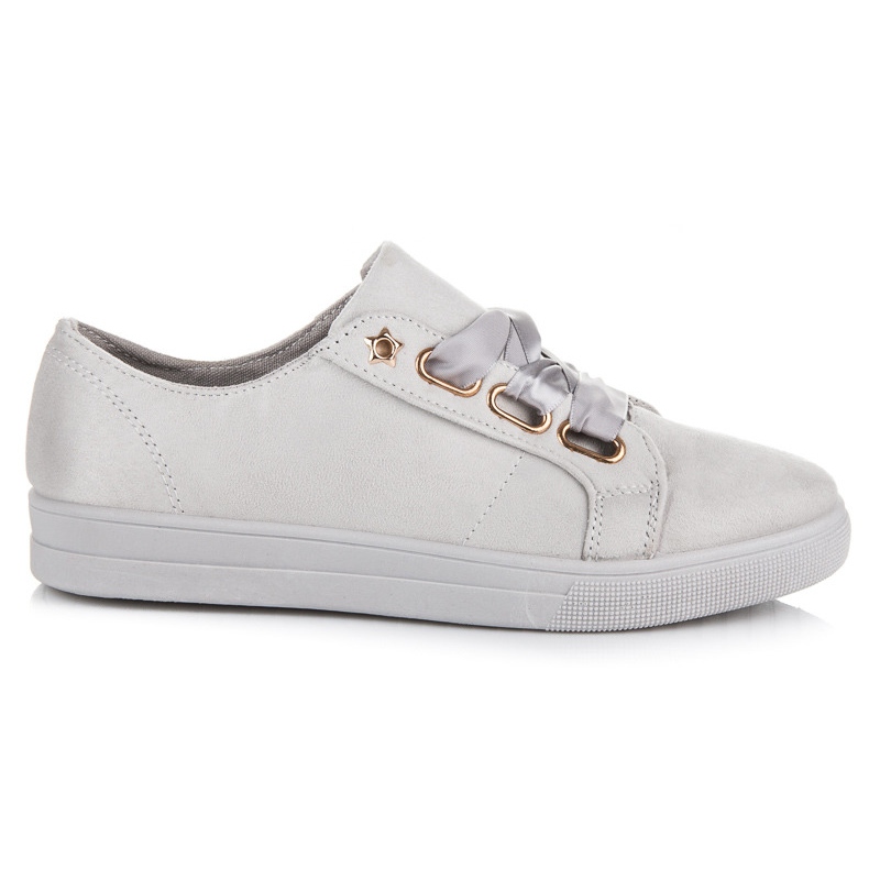 Ideal Shoes Ideal Shoes Tenisi din piele intoarsa cu panglica gri