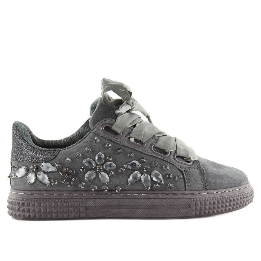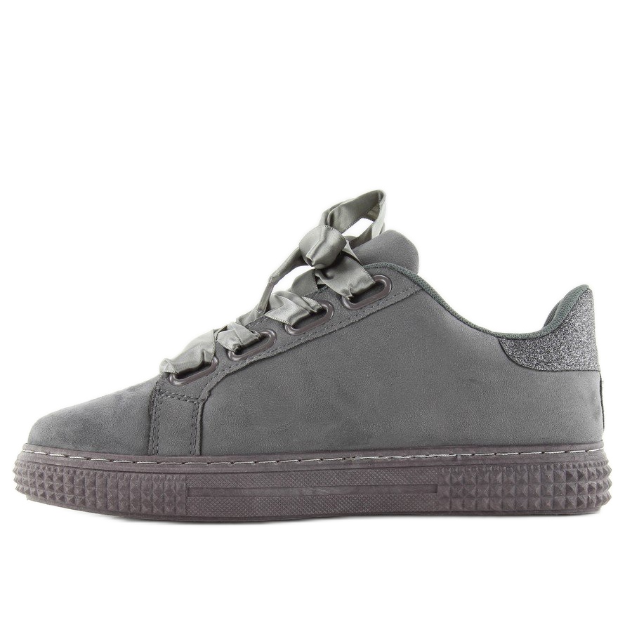Detalii: Tenisi din satin 16-535 Sireturi gri