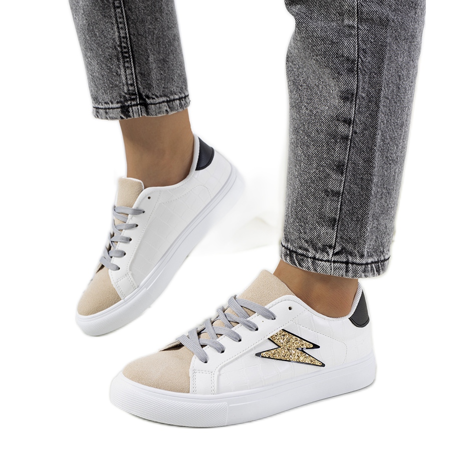 Adidași albi și bej Dings (Model F023)-stil și comoditate în fiecare zi. Combinația de alb și bej și diverse materiale creează un aspect la modă, ușor sportiv și un model delicat în stilul unui crocodil de pe superior. Talpa de cauciuc moale oferă confort chiar și în timpul plimbărilor mai lungi.