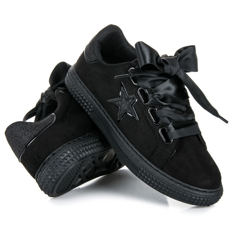 Tenisii eleganti din piele intoarsa neagra sunt alegerea perfecta pentru femeile care apreciaza confortul combinat cu un aspect la moda. Fabricate din piele ecologică de înaltă calitate, oferă nu numai un design atractiv, ci și îngrijire pentru mediu. Designul lor cu profil redus le face confortabile pentru utilizarea de zi cu zi, iar închiderea cu șireturi permite o potrivire perfectă pe picior.
