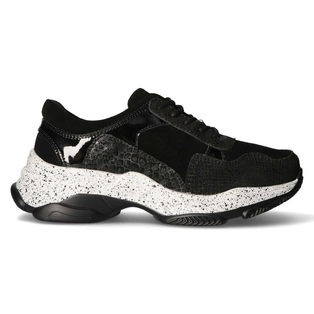 Interiorul încălțămintei este căptușit cu material, care asigură o ventilație adecvată și o utilizare plăcută. Inserția din piele ecologică mărește suplimentar confortul la purtare. Modelul este disponibil într-o culoare clasică neagră, ceea ce îl face să se potrivească perfect cu diverse stiluri - de la casual la mai elegant.