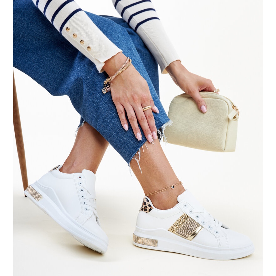 Detalii: Tenisi Giulia albi si aurii cu strasuri