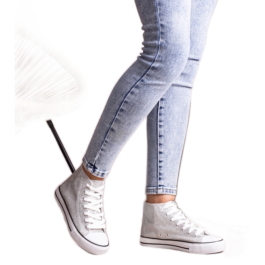 Detalii: Tenisi înalți argintii strălucitori de la Ranifali