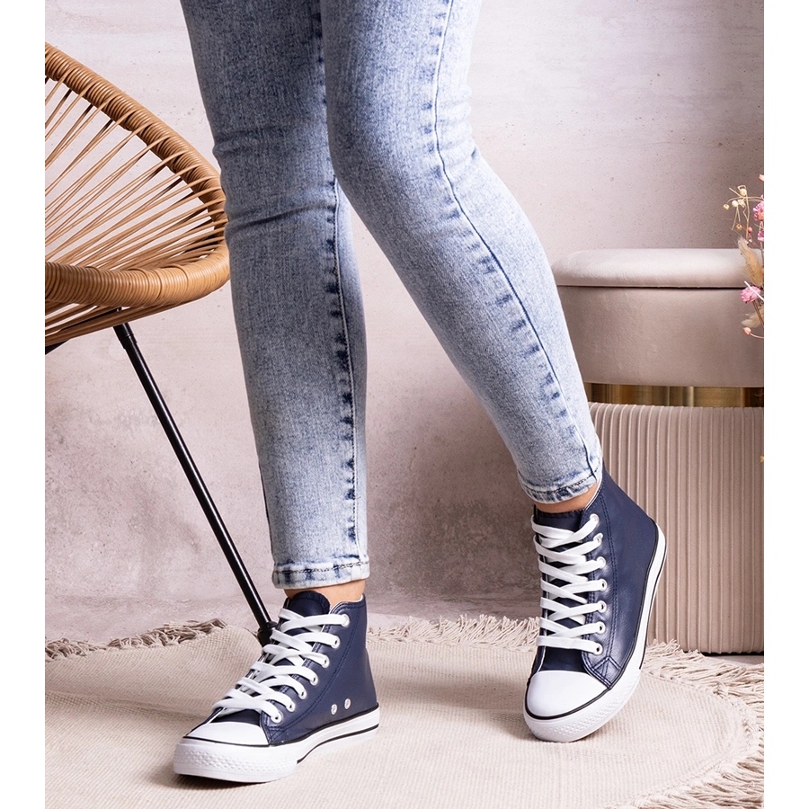 - Model: B262 Tenisi înalți bleumarin din piele ecologică