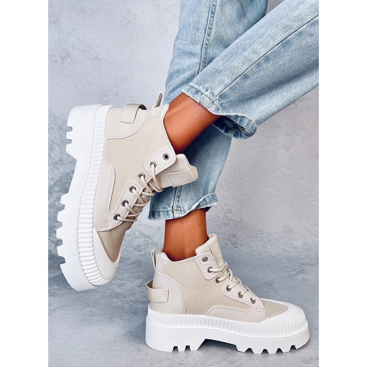 Detalii: Tenisi înalți Tinli Beige bej