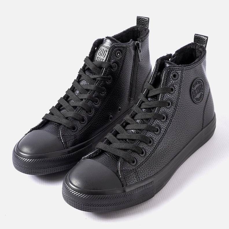 Căutați adidași universale, înalte pentru sezonul de toamnă -în sezonul sezonului? Modelul MM174012 de la Big Star este o combinație de stil urban cu soluții practice: negru, din piele ecologică netedă, izolație asigurând căldură și o talpă solidă, cauciuc.