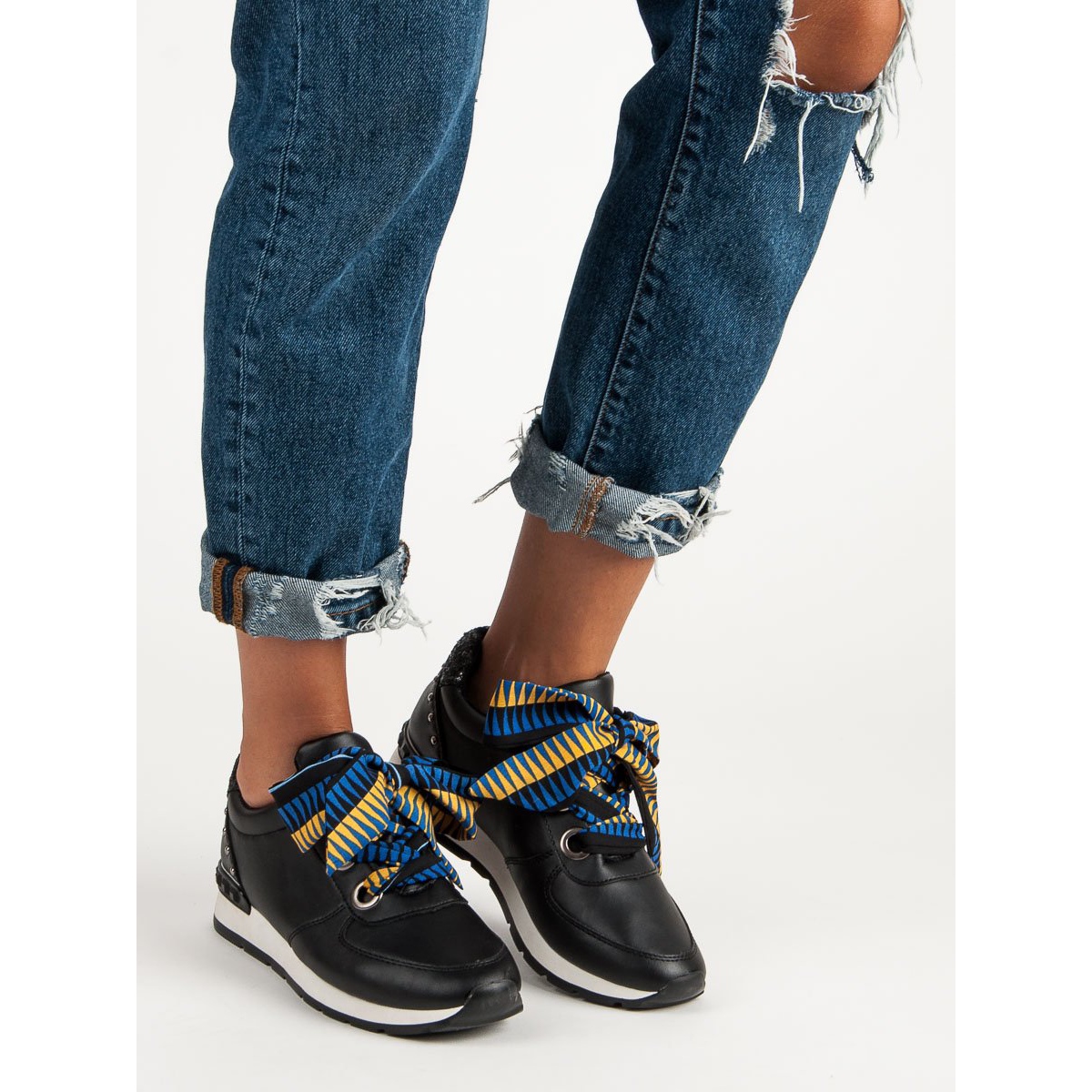 Descoperă-ți stilul cu pantofii sport negri la modă cu șireturi de la Butymodne! Acești pantofi unici sunt combinația perfectă de confort sportiv și eleganță feminină care cu siguranță va atrage atenția tuturor. Confectionate din piele ecologica de cea mai inalta calitate, nu tin doar de mediu, ci asigura si durabilitate si confort la purtare.