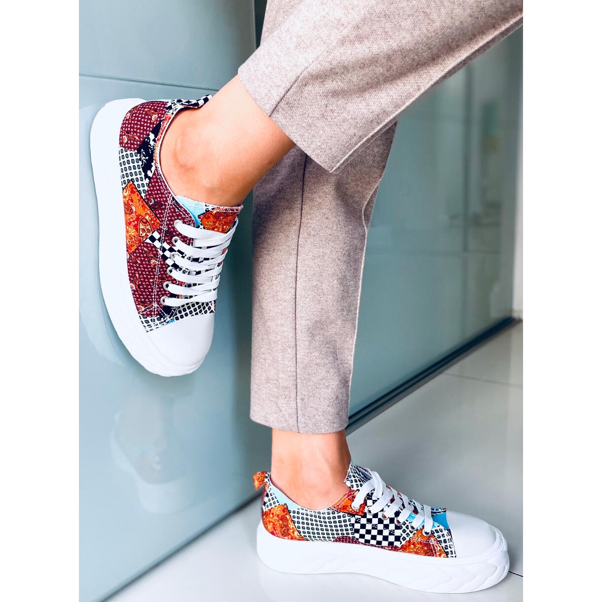 Inna marka Tenisi Madi Red Jacquard Weave cu talpă înaltă multicolor