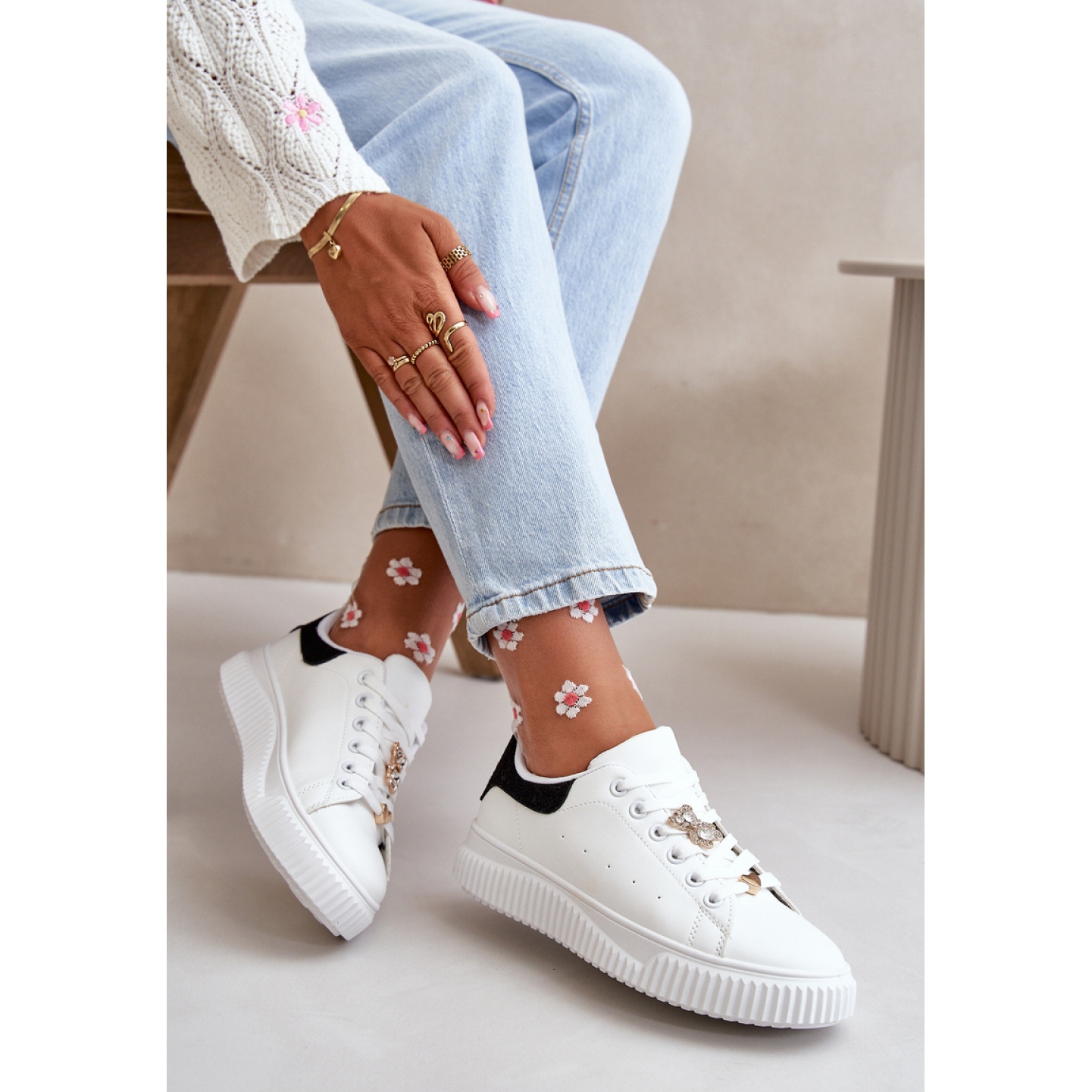 Adidașii joasă de damă din piele ecologică sunt o combinație de stil și confort. Așezați pe o platformă, acești adidași se remarcă prin ace fermecătoare pe șireturi care le conferă un farmec unic. Acestea sunt încălțăminte perfectă pentru stilul de zi cu zi, care combină un aspect la modă cu confortul la purtare.