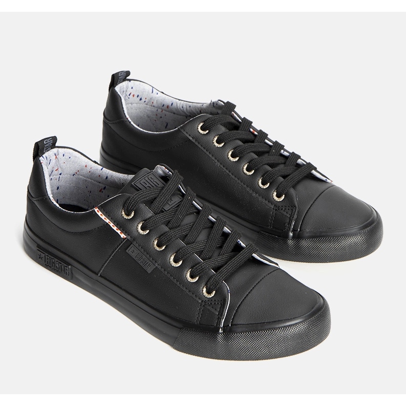 Adidași negri Big Star KK174004 - clasic, confortabil și universal. Tăierea cu profil scăzut va funcționa în stilizări de zi cu zi: pentru blugi, chinos sau pantaloni scurți scurti. Partea exterioară a pielii ecologice oferă un aspect elegant, iar talpa textilă asigură confortul toată ziua.
