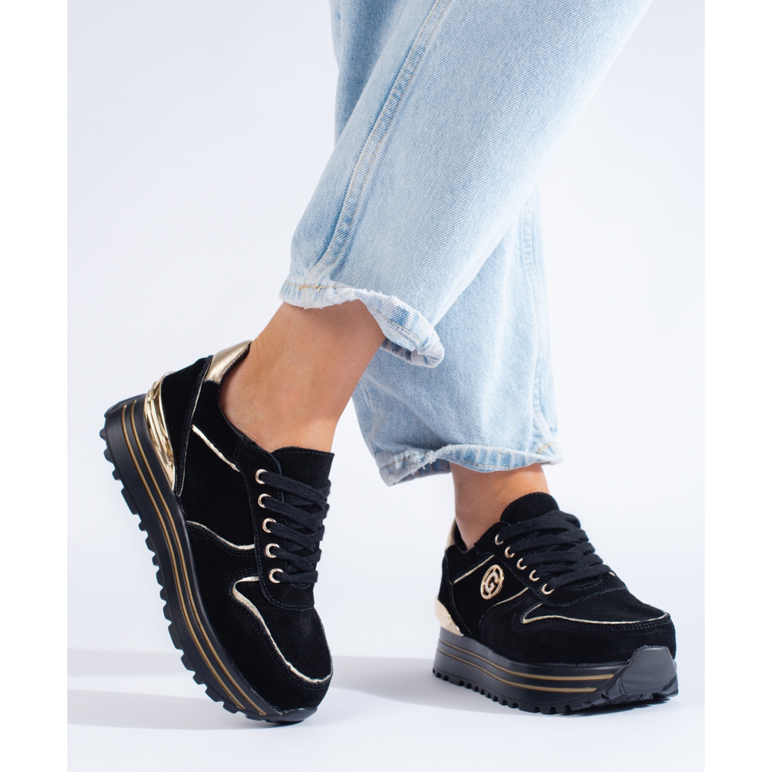 Adidașii pentru femei negre pe platformă (negru/auriu) - adidași eleganți în fiecare zi