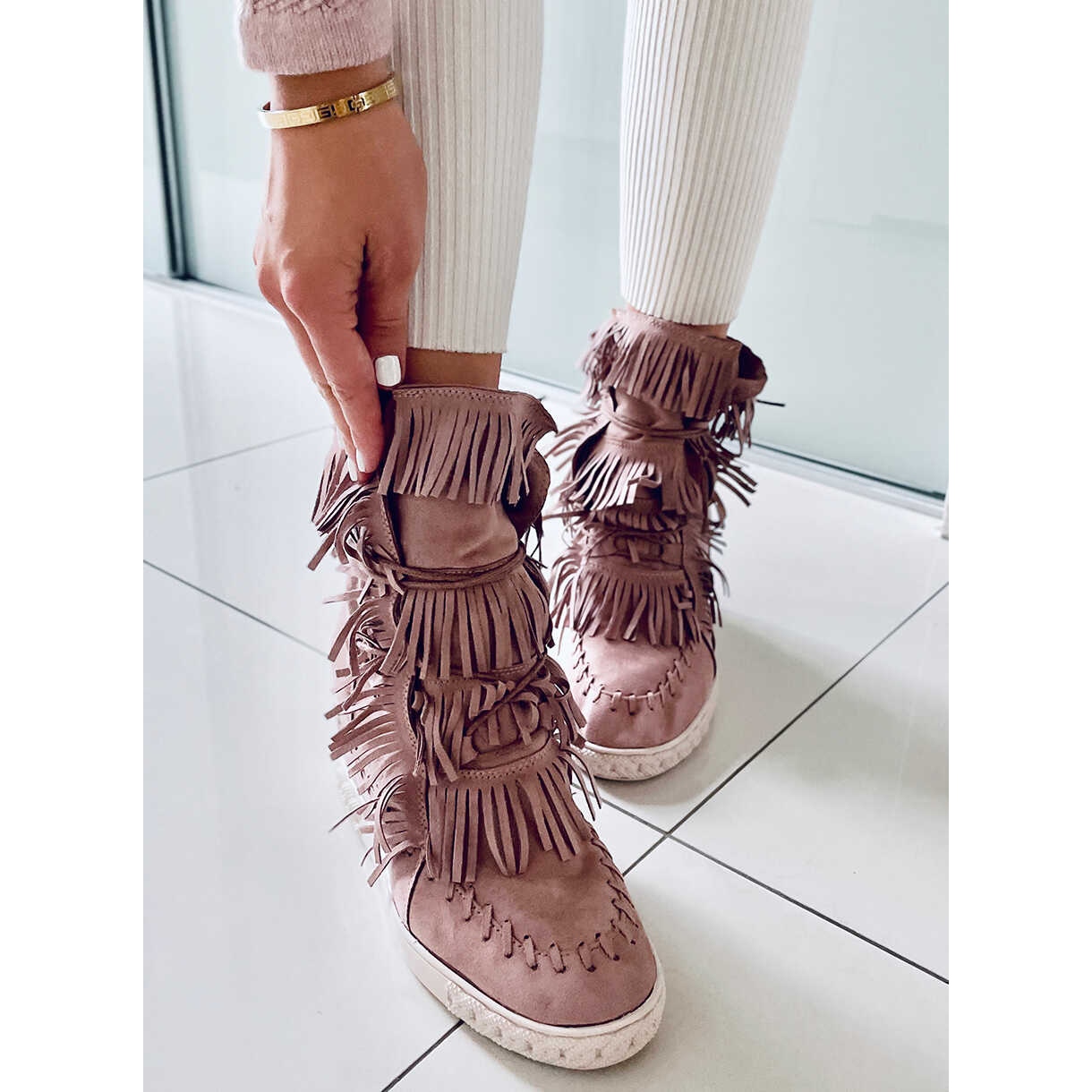 Detalii: BM Tenisi Peggy Pink din piele intoarsa cu franjuri roz