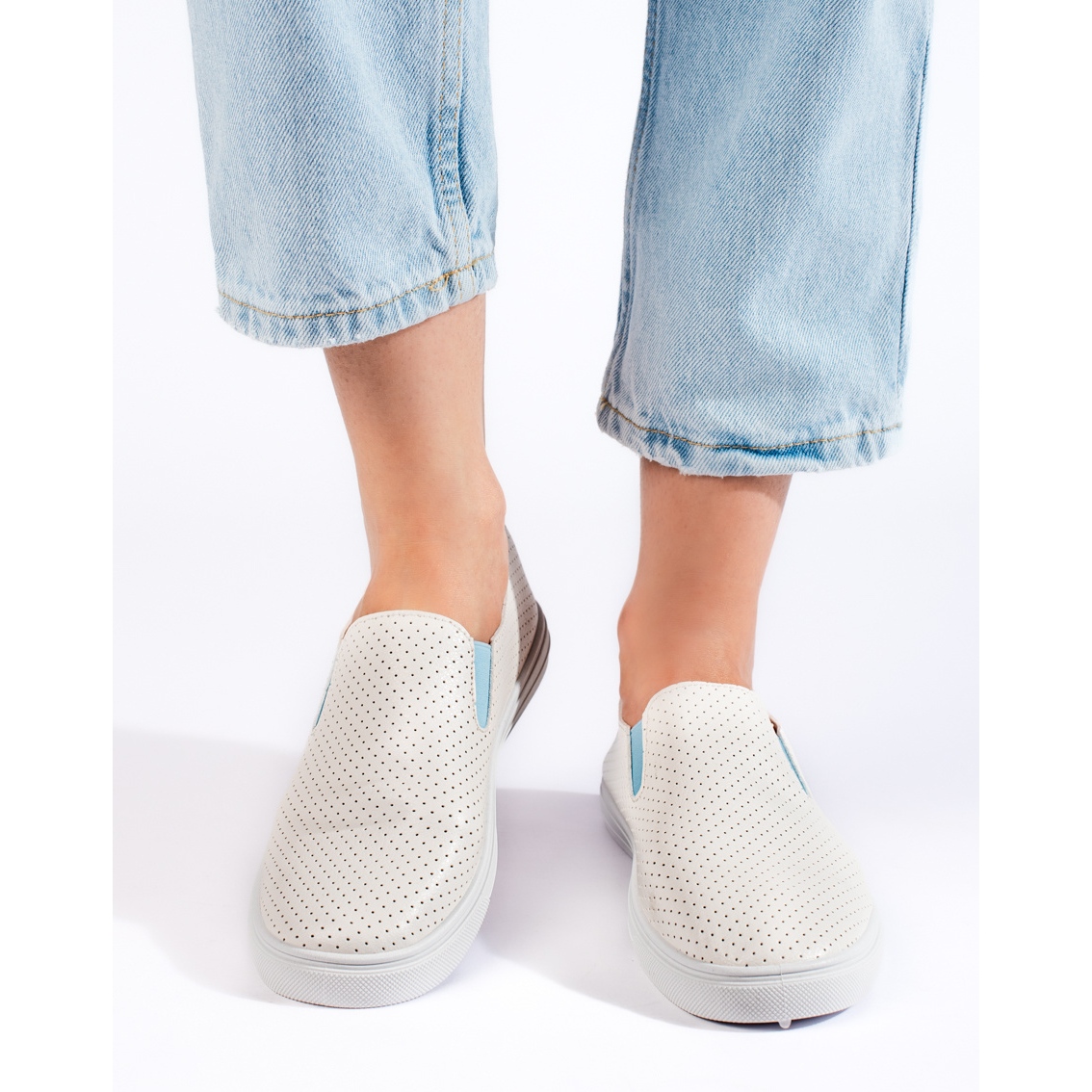 Detalii: Tenisi slip-on ajurati în alb și albastru