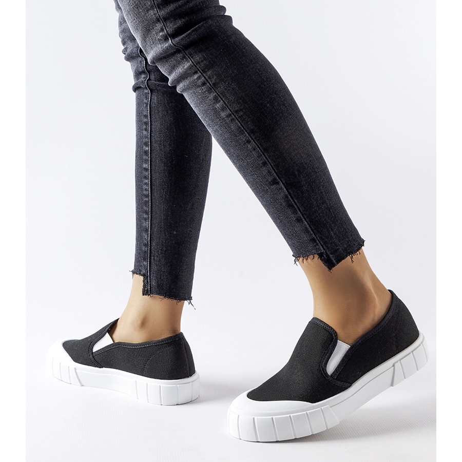 Adidașii negri Codiponte cu slip-on sunt alegerea perfectă pentru fiecare femeie la modă care dorește să îmbine stilul cu confortul. Nasul rotund le conferă un farmec unic, ceea ce le face o completare perfectă atât pentru stilurile de zi cu zi, cât și pentru cele mai elegante.