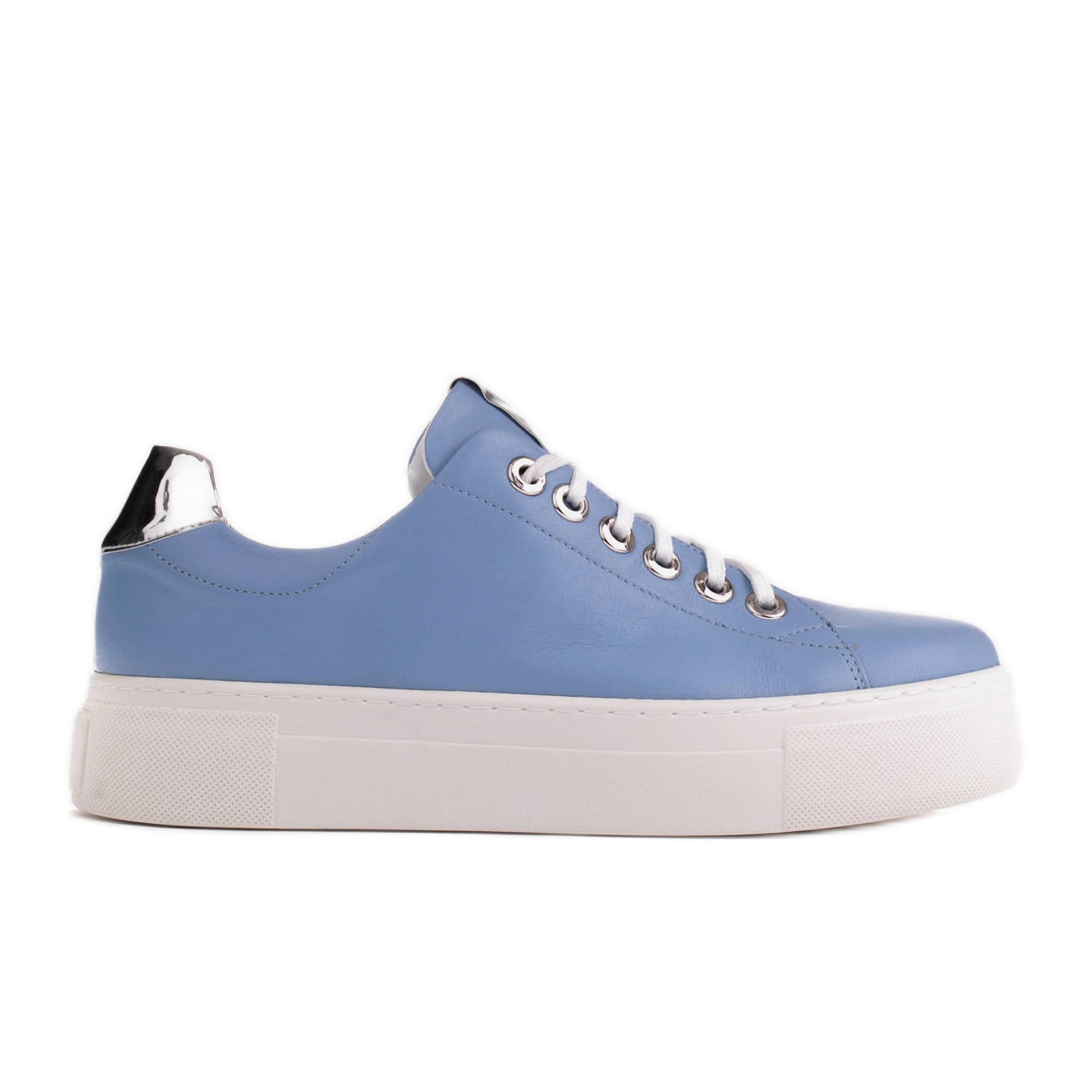Pantofi moderni și confortabili MARCO Pantofi adidași pentru femei din colecția Keeshoes. Combinația de piele de cereale într -o nuanță albastră, cu accente de argint și o talpă albă, groasă, dă efectul unui stil ușor sportiv și la modă.