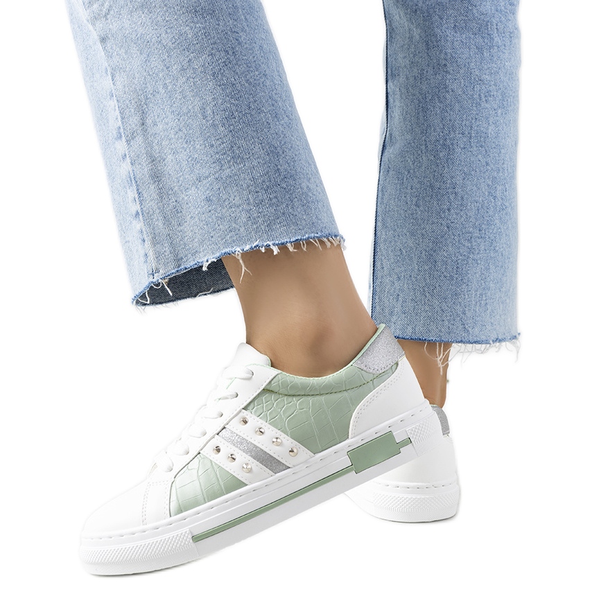Aceștia sunt adidași verzi cu știfturi Luus, care sunt un plus la modă oricărei ținute! Acești adidași extrem de stilați se caracterizează printr-un motiv unic de crocodil și accesorii atrăgătoare, precum știfturile și sclipiciul argintiu, care le conferă un caracter unic.