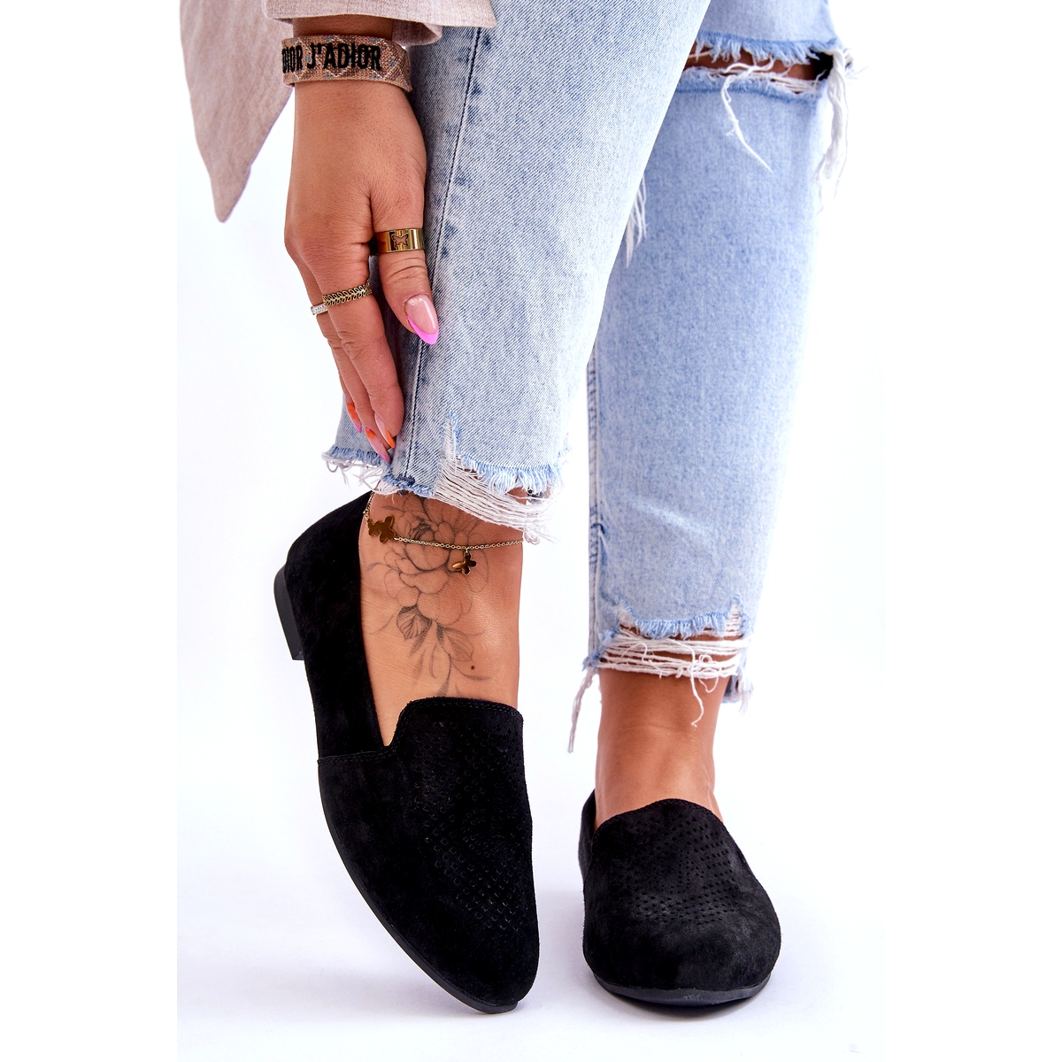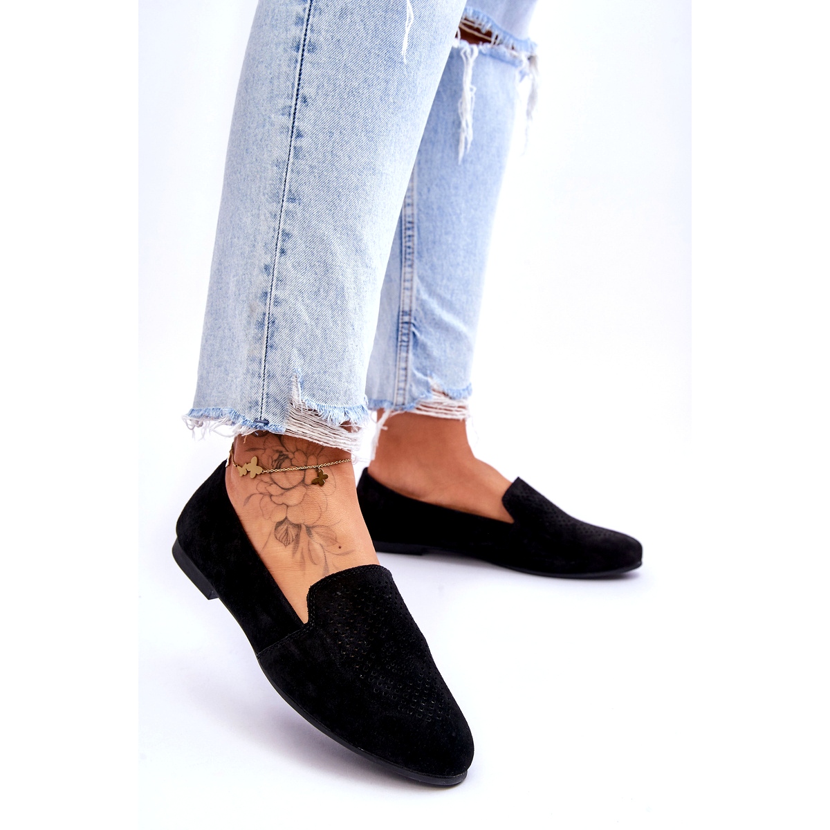 Descoperiți eleganța și confortul cu Mocasins S. Barski pentru femei, care sunt alegerea perfectă pentru orice ocazie. Fabricate din piele de căprioară naturală de înaltă calitate, aceste mocane negre, deschise, combină stilul cu funcționalitatea. Modelul deschis de pe față le oferă un personaj unic, iar nasul de migdale subliniază senzualitatea.