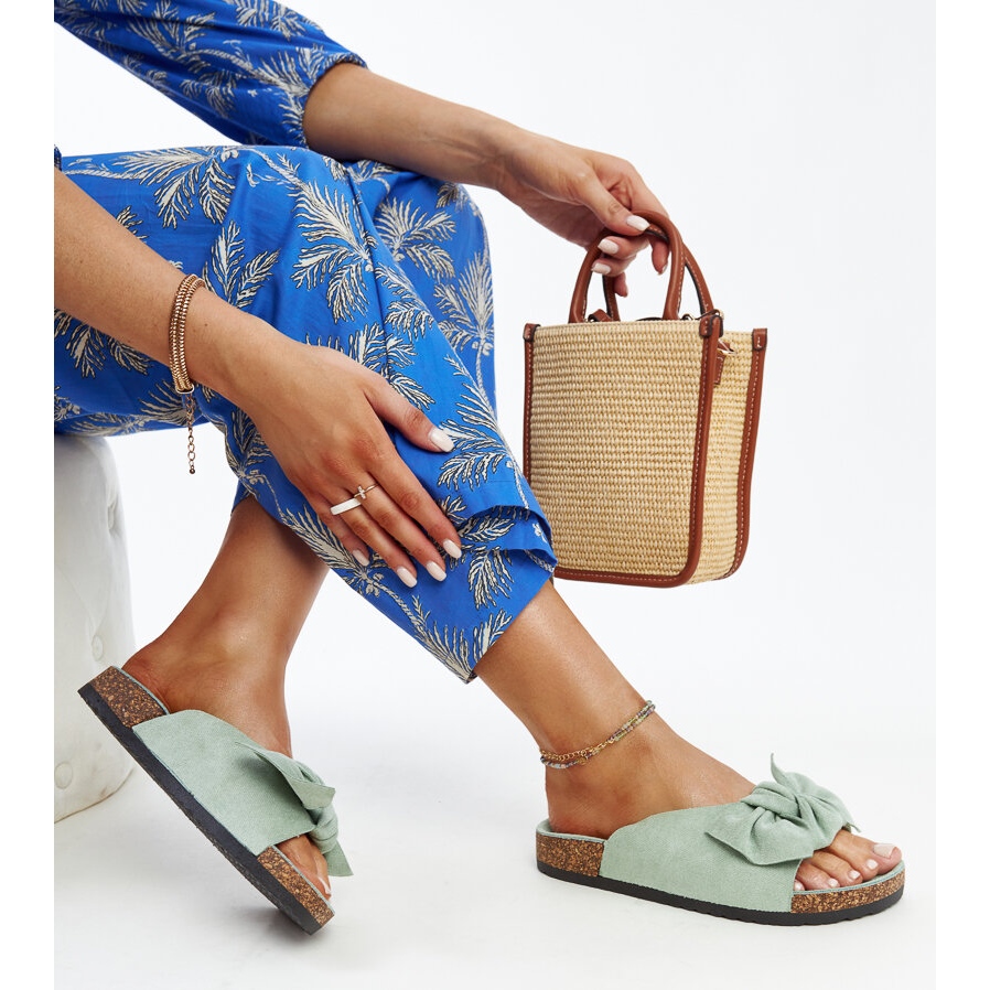Inna marka Tobogane Aamu de culoare verde deschis cu talpa de pluta