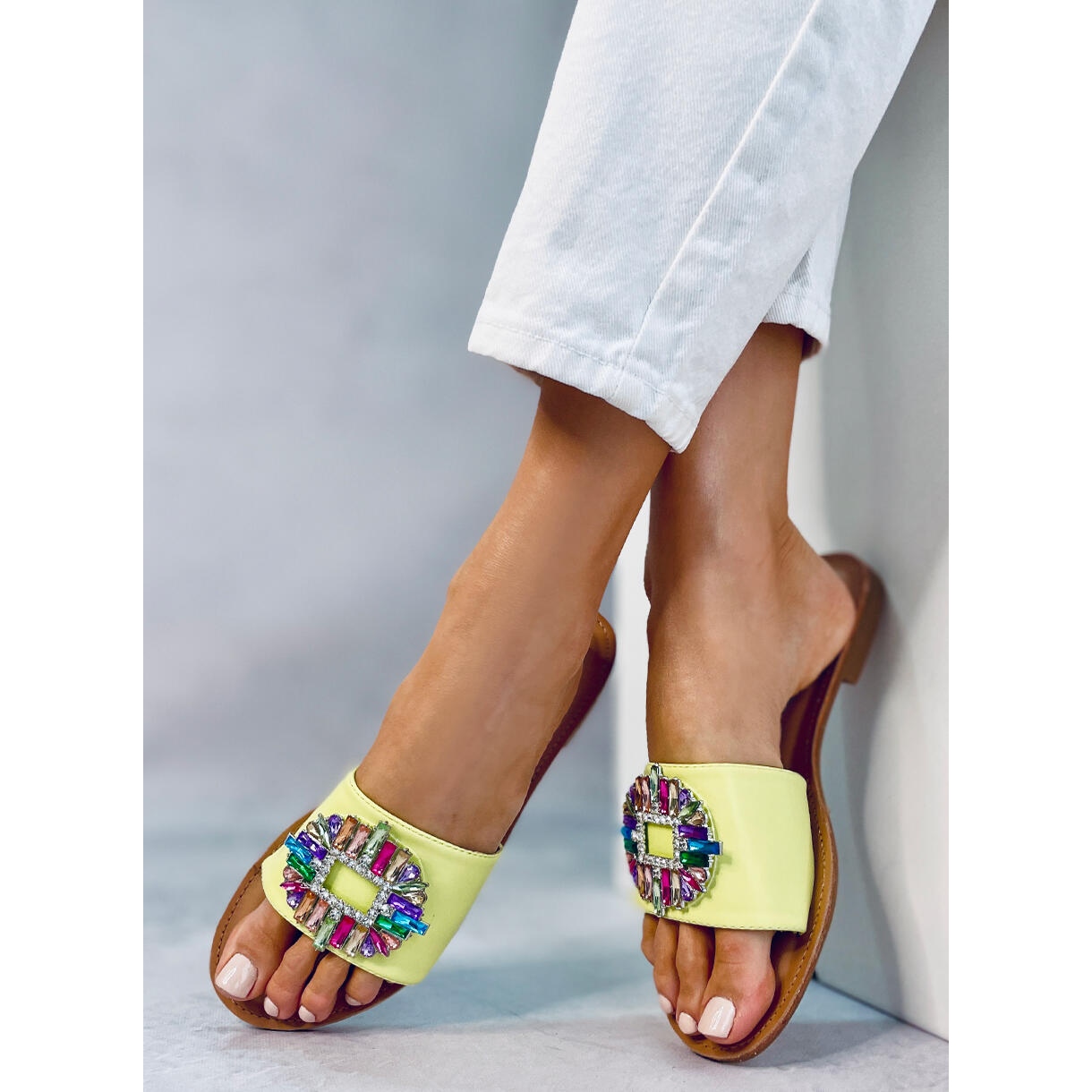 Flip-flops Seastar cu pietre colorate Lowell Green - o explozie galbenă de culoare pentru picioarele tale!