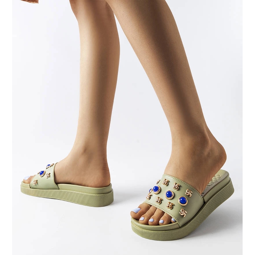 - Model: Flip -flops decorat verde decorat