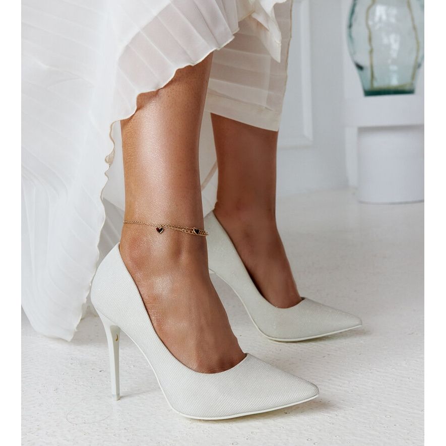 Detalii: Tocuri albe strălucitoare cu inserție din piele de la Cortesa