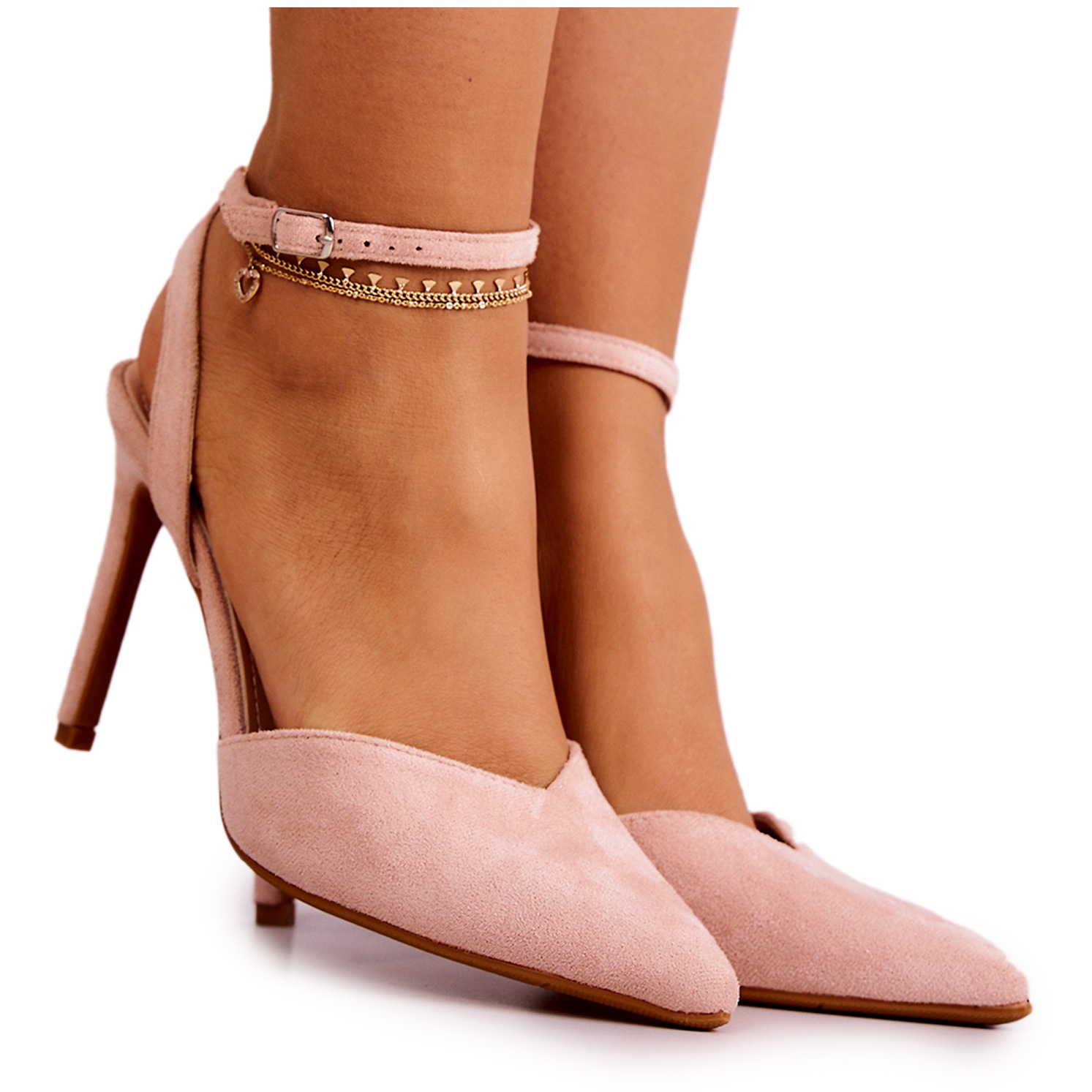 Tocurile înalte sunt concepute pentru un suport maxim pentru picior. O curea reglabilă cu cataramă se înfășoară în jurul gleznei, asigurând stabilitate, iar un stiletto înalt (10 cm) prelungește optic picioarele, oferind figurii un aspect mai suplu. Modelul se potrivește perfect stilurilor elegante - se potrivește atât cu rochii, cât și cu pantaloni eleganți.