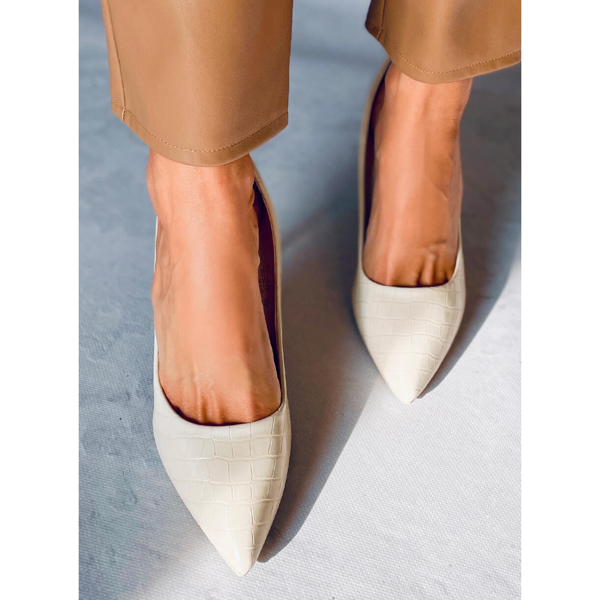 Realizați din piele ecologică de înaltă calitate, acești pantofi combină stilul la modă și confortul la purtare. Culoarea bej le face să se potrivească perfect cu diverse ținute – de la rochii elegante la pantaloni casual. Degetele ascuțite prelungesc optic picioarele, ceea ce adaugă șic oricărei femei.