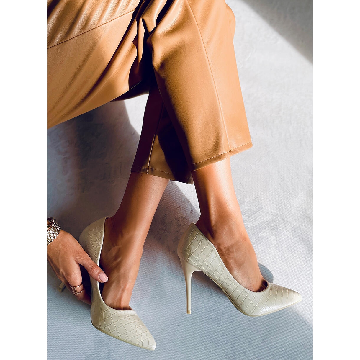 Descoperă extraordinarele pantofi cu toc pentru femei Hanne Beige care vor adăuga eleganță oricărui stil! Acești pantofi cu toc subțire, înalt de 10,5 cm impresionează nu numai prin înălțime, ci și prin aspectul unic. Textura în relief care imită pielea de șarpe le conferă un caracter unic, atrăgând atenția și făcându-le o alegere ideală pentru ocazii speciale.