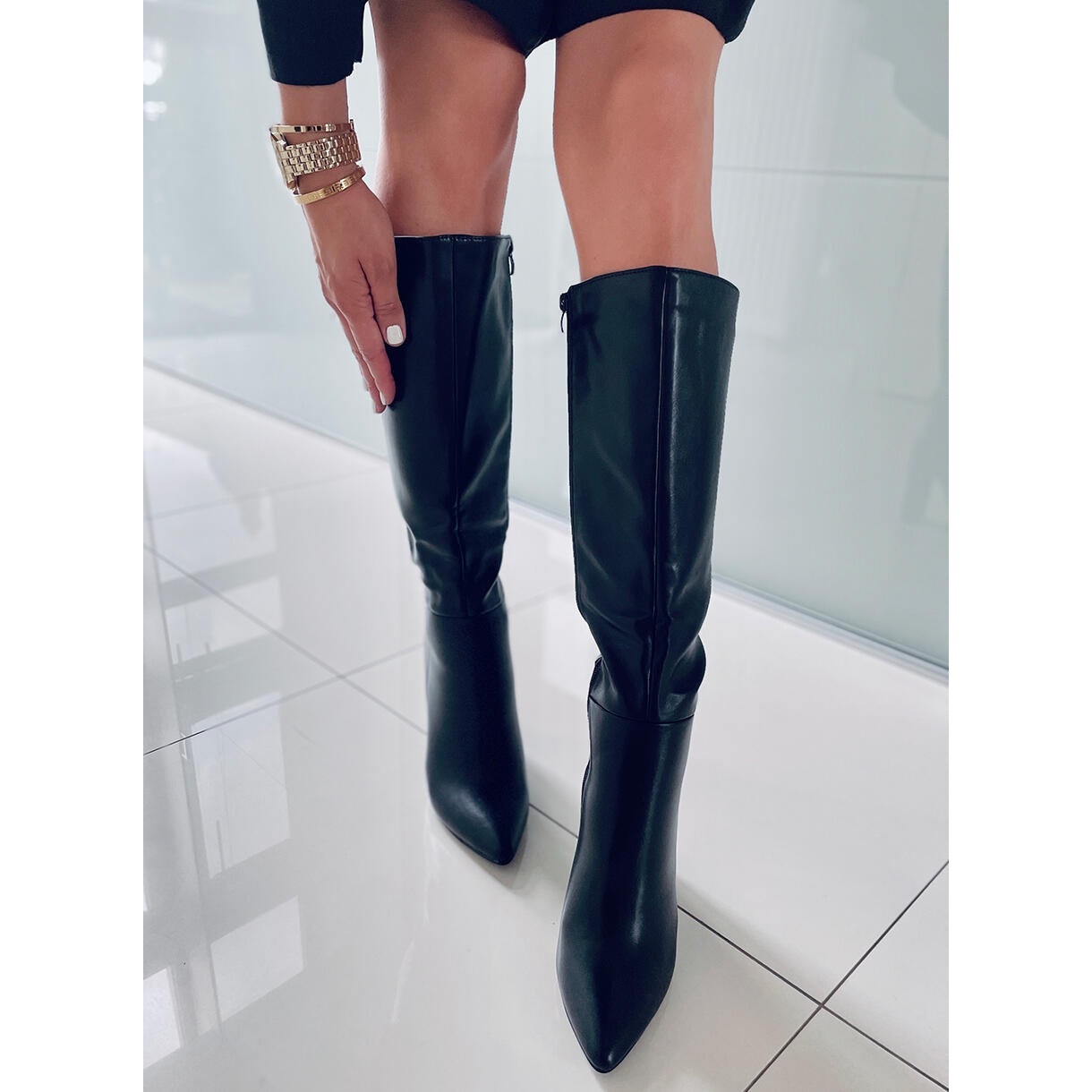 Adaugă eleganță și stil clasic garderobei tale cu cizma PA1 Tiffany Black! Aceste cizme unice de dama cu toc inalt, inalte de 11 cm, sunt esenta stilului si confortului. Designul cu degetele ușor conice face piciorul să arate excepțional de atractiv, iar călcâiul înalt, stabil, prelungește optic picioarele, adăugându-le eleganță.