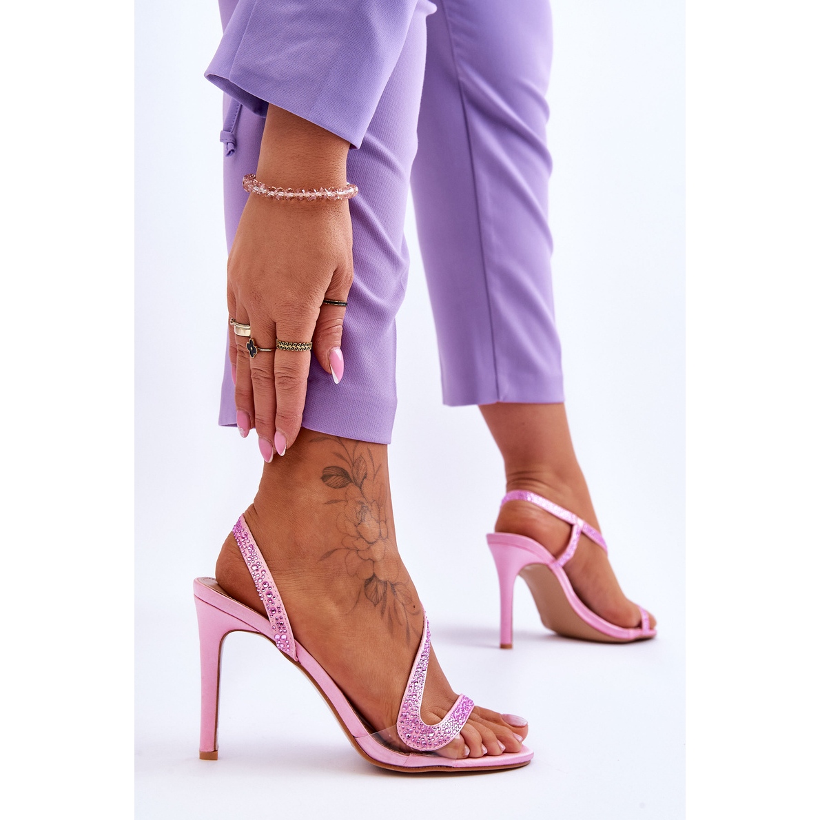 Designul lor unic este îmbogățit cu decorațiuni sub formă de strasuri care imită strasuri, care adaugă eleganță și strălucire acestor pantofi. Varful deschis, rotunjit si tocul inalt in forma de stiletto sunt concepute pentru a subtire optic picioarele, ceea ce face ca sandalele sa fie perfecte pentru diverse ocazii, de la iesiri la petreceri de vara.