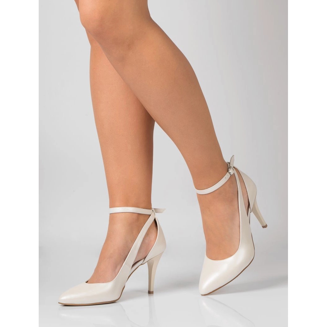 Detalii: BUTDAM Tocuri înalte de dans din piele prinse la gleznă cu un decupaj ecru de Livia alb