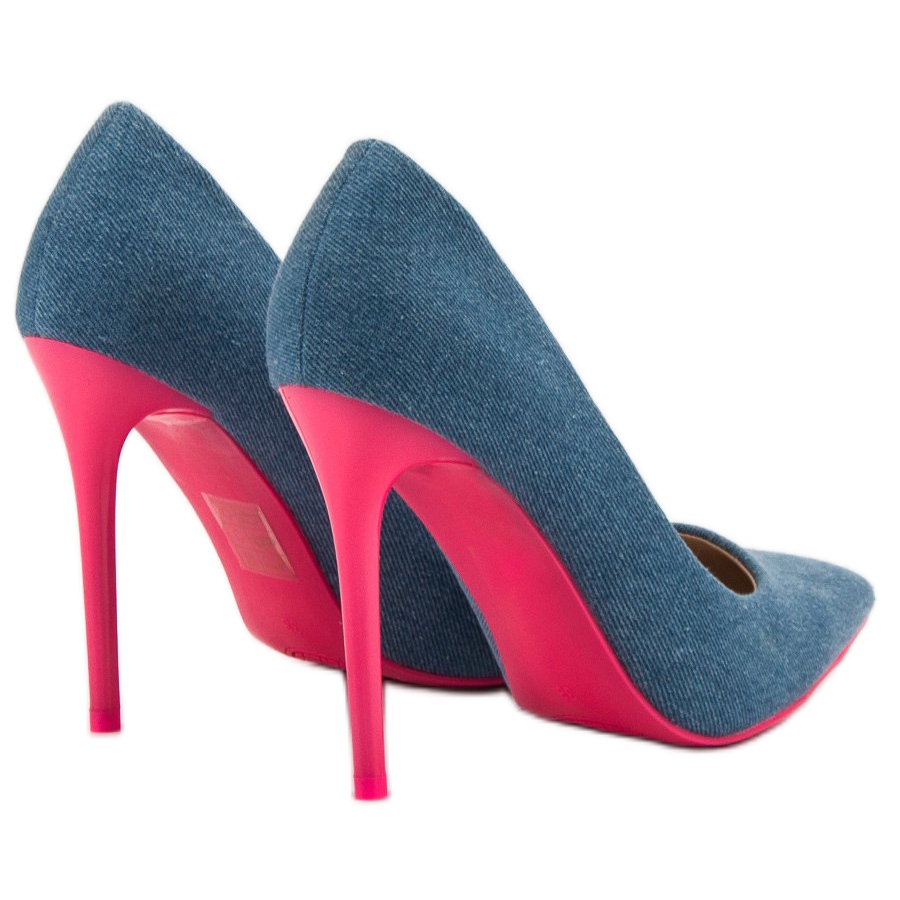 Faceți cunoștință cu Tocuri înalte Small Swan Denim într-o nuanță de albastru, care sunt alegerea perfectă pentru femeile care doresc să iasă în evidență din mulțime. Acești pantofi unici combină cele mai recente tendințe ale modei, oferind nu doar stil, ci și confort. Tocul și talpa roz adaugă caracter, iar degetele ascuțite subliniază preferințele actuale de modă.