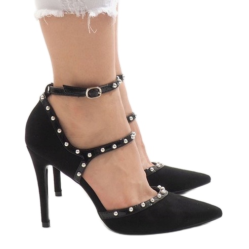 Pompele negre din piele intoarsa se potrivesc perfect cu o varietate de stiluri - se potrivesc atat cu rochiile elegante, cat si cu pantalonii la moda. Un avantaj suplimentar sunt margelele albe si strasurile si crampoanele originale care adauga un pic de stralucire si modernitate.