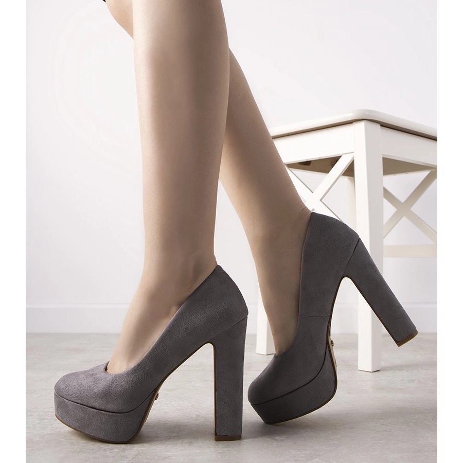Pompele se potrivesc perfect cu o varietate de ținute, datorită culorii gri, care uneori este numită „Grey” de către producător. Se caracterizează prin lipsa elementelor de fixare suplimentare - sunt slip-on. Avantajul acestor pompe este o platformă confortabilă care compensează înălțimea de 12,5 cm.