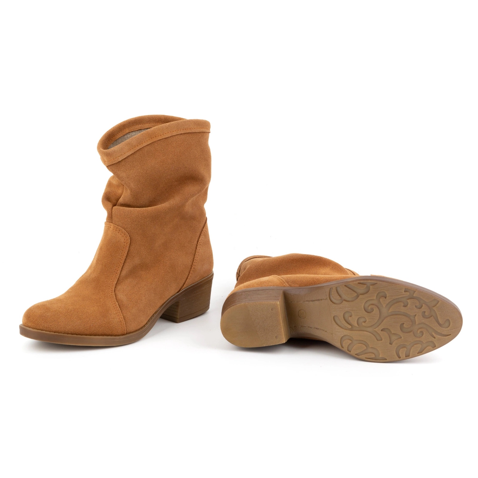Sunt confectionate din piele naturala sub forma de nubuc, care nu numai ca arata frumos pe picior, dar este si moale si placuta la atingere. Partea interioară a cizmelor este căptușită cu un cerc pentru pantofi - un material plăcut la atingere și care permite aerului să treacă bine.